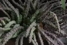 筒叶花月,是景天科青锁龙属的多年生草本植物。植株多分株,灌木状,茎较粗壮,圆柱形,表皮灰褐色;叶片肉质,互生,呈圆筒状,簇生于茎或分枝顶端,叶端呈斜截形,截面为椭圆形;花呈星状,淡白色;花期秋季。…全部>>