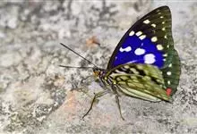 大紫蛱蝶为大型蝶种,翅展约86~110mm。翅紫黑色,有白色斑点点缀其中,雄蝶的翅具强烈紫色虹彩,其余部分暗褐色,后翅臀角具粉色斑。雌蝶体型较大,但是没有蓝紫金属光泽。原产于东亚的蝶类。…全部>>