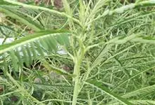 田菁 Pers.)是豆科田菁属的一年生草本。株高2~3.5米;茎绿色或褐红色,微被白粉;小叶线状长圆形,先端钝或平截,两侧不对称;花枝疏生白色绢毛,与叶轴及花序轴均无皮刺;荚果细长圆柱形;种子有光泽,…全部>>