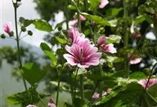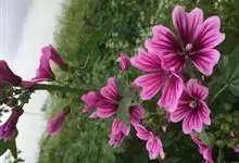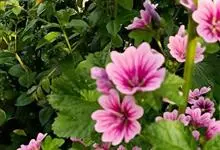 锦葵:二年生或多年生直立草本,高50-90厘米,分枝多,疏被粗毛。叶圆心形或肾形,具5-7圆齿状钝裂片,两面均无毛或仅脉上疏被短糙伏毛。花3-11朵簇生,小苞片3,长圆形疏被柔毛;花紫红色或白色,…全部>>