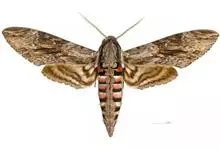 鬼脸天蛾,是鳞翅目天蛾科面形天蛾属动物。成虫翅展100~125毫米,体黑褐色;胸背有骷髅形斑纹;卵圆球形,直径约2毫米,淡黄绿色,表面光滑;老熟幼虫体长70~90毫米,蛹体长约56毫米;前翅为褐色,…全部>>
