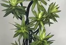 巴西美人属多年生木本观叶植物。它为常绿乔木,盆栽通常可达最高1·5米,矮的40—60厘米左右。枝叶层次分明,可给人们以“步步高升”之寓意。为世界上十分流行的新一代高级室内观叶植物。全部>>
