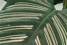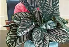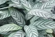 孔雀竹芋:竹芋科,肖竹芋属多年生常绿草本植物。植株挺拔株高可达60厘米。叶柄紫红色, 叶片薄革质,卵状椭圆形,叶面上有墨绿与白色或淡黄相间的羽状斑纹,就像孔雀尾羽毛上的图案,因而得名。…全部>>