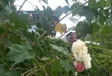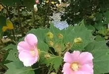 木芙蓉,锦葵科木槿属落叶灌木或小乔木。小枝上有细绒毛;叶片为卵状心形,托叶为披针形,常早落;花单生,花萼为钟形,花冠初为白色或淡红色,后逐渐变为深红色;果实为扁球形,有淡黄色的毛附着。花期8到10月。…全部>>