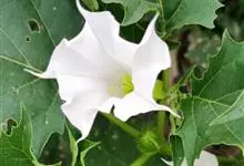 曼陀罗,茄科曼陀罗属一年生大型草本植物,全株光滑。有臭气;叶呈广卯形,边缘具不规则波状浅齿裂;花单生于枝杖间或叶腋,直立,有短梗;花萼是筒状裂片三角形,颜色为白色或淡紫色;果实为蒴果卵状,…全部>>
