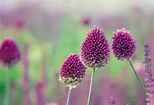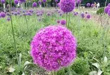 大花葱是石蒜科葱属多年生常绿草本。株高30-60厘米;有鳞茎,呈圆形;叶呈宽线形至披针形,绿色;花葶高大,高约1米,呈伞形花序球状,有数百朵小花,紫红色;种子呈球形,黑色;花期5-6月。…全部>>