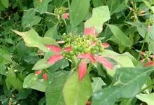 猩猩草:常绿或半常绿灌木,盆栽时株高0.5米-2米,在亚热带地区可长到6米以上。茎直立而光滑,单叶互生,卵状椭圆形至阔披针形,具不规则的深缺刻。长10-15厘米。花小,有蜜腺,排列成密集的伞房花序。…全部>>