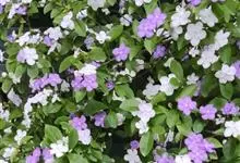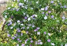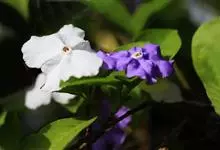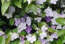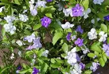 鸳鸯茉莉,茄科鸳鸯茉莉属常绿灌木植物,高1米。茎皮深褐色;分枝力强;单叶互生纸质;花簇生,聚伞花序,花冠五裂花瓣锯齿,含苞时蘑菇状深紫色,花香浓郁;花期4-10月。鸳鸯茉莉花朵芳香,…全部>>