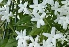 素馨花,木犀科素馨属多年生的攀援灌木植物。攀援灌木,小枝圆柱形,具棱或沟;叶对生,叶轴常具窄翼,小叶片卵形或长卵形;聚伞花序顶生或腋生,花序梗长,苞片线形,花萼无毛,裂片锥状线形,花冠白色,…全部>>