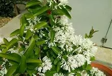 素馨花,木犀科素馨属多年生的攀援灌木植物。攀援灌木,小枝圆柱形,具棱或沟;叶对生,叶轴常具窄翼,小叶片卵形或长卵形;聚伞花序顶生或腋生,花序梗长,苞片线形,花萼无毛,裂片锥状线形,花冠白色,…全部>>