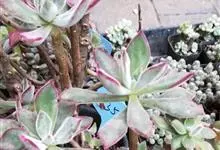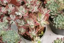 锦晃星是景天科、石莲花属多肉植物。多年生小灌木状多浆植物,灰绿色卵状倒披针形肥厚肉质叶轮状互生,全缘,椭圆尖头,长3-4厘米,宽2-2.5厘米,厚约1厘米,玲凉季节阳光下,叶端及上缘呈红色。…全部>>
