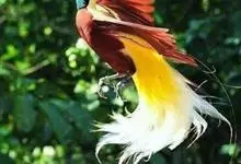 大极乐鸟是极乐鸟属中最大的鸟种。成年雄鸟体长可达到43厘米,雌性可达35厘米。雄鸟的额、颊、喉等墨绿色;头、颈黄色;上体暗赤栗色;腹部葡萄红色,胁部有长饰羽,其基部橙黄,中部黄色,…全部>>