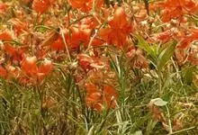 山丹是百合科百合属的多年生草本植物。鳞茎卵形或圆锥形,鳞片长圆形或长卵形,白色;叶散生茎中部,线形,边缘有乳头状突起;花单生或数朵成总状花序,花鲜红色,常无斑点,花被片反卷,…全部>>