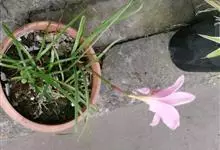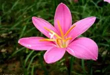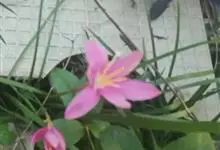 小韭兰学名韭菜莲又名风雨花、菖蒲莲、红玉帘和旱水仙,多年生草本,鳞茎卵球形,基生叶常数枚簇生,线形,扁平,花单生于花茎顶端,下有佛焰苞状总苞,花玫瑰红色或粉红色,蒴果近球形,种子黑色,花期夏秋。韭莲…全部>>