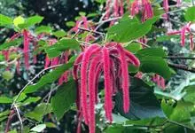 红穗铁苋菜:为大戟科、铁苋菜属植物,灌木,高0.5-3米。嫩枝被灰色短绒毛,毛逐渐脱落,小枝无毛。 花序色泽鲜艳,葇荑花序下垂,如狐狸尾状,雌花近卵形,长约0.8毫米,顶端急尖,具短毛;子房近球形,…全部>>