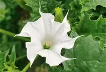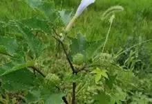 曼陀罗,茄科曼陀罗属一年生大型草本植物,全株光滑。有臭气;叶呈广卯形,边缘具不规则波状浅齿裂;花单生于枝杖间或叶腋,直立,有短梗;花萼是筒状裂片三角形,颜色为白色或淡紫色;果实为蒴果卵状,…全部>>