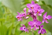 紫花苞舌兰:植株高达1米。假鳞茎卵状圆锥形,具3-5枚叶。叶质地薄,淡绿色,狭长,具折扇状的脉。花葶长达1米,下部具数枚筒状鞘;总状花序短,具约10朵花;花紫色;花瓣近椭圆形,比萼片大,…全部>>