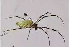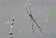棒络新妇,是蜘蛛目肖蛸科络新妇属节肢动物。雄蛛体长约6毫米,背甲褐色,具黑色纵斑;步足黑色,有橙色环纹;腹部筒形、褐色,有黄斑;雌蛛体长约21毫米,背甲黑色,有大量银色长毛;触肢黄色,步足黑色,…全部>>