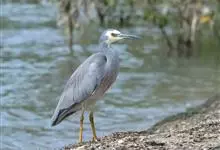 白脸鹭:体长60-70厘米,体重550克。成鸟相对其他鹭科鸟类要小,正如它的名字,很容易通过白脸鹭的蓝灰色身体和独特的白脸来识别。嘴长而尖直,翅大而长,脚和趾均细长,胫部部分裸露,脚三趾在前一趾在后,…全部>>