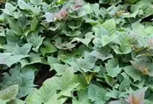 番薯 Lam.),多年生草质藤本植物,具有乳汁;其块根为白、红或黄色;茎生不定根;叶呈宽卵形或卵状心形,叶色有浓绿、黄绿、紫绿等,前端渐尖,基部呈心形或近平截;花冠为粉红、白、淡紫或紫色,…全部>>