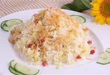 扬州炒饭又名扬州蛋炒饭,是江苏省扬州市的一道传统名菜,属于淮扬菜,其主要食材有米饭、火腿、鸡蛋、虾仁等。扬州炒饭选料严谨、制作精细、加工讲究,而且注重配色。炒制完成后,…全部>>