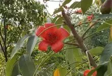 木棉是锦葵科、木棉属落叶大乔木,树皮灰白色,幼树的树干通常有圆锥状的粗刺;分枝平展。掌状复叶,小叶5-7片,长圆形至长圆状披针形,花单生枝顶叶腋,通常红色,有时橙红色,直径约10厘米;萼杯状,…全部>>