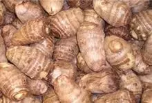 芋头又称芋、芋艿,天南星科植物的地下球茎,形状、肉质因品种而异,通常食用的为小芋头。多年生块茎植物,常作一年生作物栽培。叶片盾形,叶柄长而肥大,绿色或紫红色;植株基部形成短缩茎,逐渐累积养分肥大成肉…全部>>