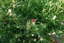 大花马齿苋:一年生草本,高10-30厘米。茎平卧或斜升,紫红色,多分枝,节上丛生毛。叶密集枝端,较下的叶不规则互生,叶片细圆柱形,无毛。花单生或数朵簇生枝端,直径2.5-4厘米,…全部>>
