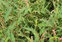 酸模叶蓼 Delarbre),是蓼科蓼属的一年生草本。株高可达90厘米;茎直立,分枝,节部膨大;叶披针形或宽披针形,先端渐尖或尖,基部楔形,上面常具黑褐色新月形斑点,…全部>>