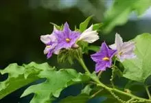 素馨叶白英,是双子叶植物纲、茄科、茄属的一种缠绕灌木,多分枝,光滑无毛,茎具纵向细条纹。聚伞式圆锥花序顶生或侧生;花白带蓝色;萼星形,萼齿长圆形;花冠辐形,具皱折;雄蕊着生于花冠筒喉部,花药黄色,子…全部>>