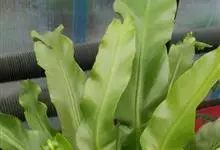 巢蕨是铁角蕨科铁角蕨属的中型附生草本植物。植株高1-1.2米;根状茎直立,深棕色;叶簇生,叶柄呈浅禾秆色,叶片呈阔披针形,干后灰绿色,两面均无毛;孢子囊群呈线形,生于小脉的上侧;囊群盖呈线形,浅棕色。…全部>>