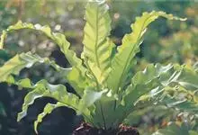 鸟巢蕨,又名山苏花,为铁角蕨科巢蕨属下的一个种,属多年生阴生草本观叶植物。植株高80-100厘米,根状茎直立,粗短,木质,粗约2厘米,深棕色,先端密被鳞片;鳞片阔披针形,长约1厘米,先端渐尖,全缘,…全部>>