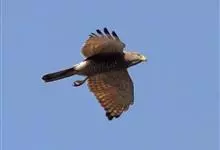 灰脸鵟鹰为鹰科、鵟鹰属的鸟类,是一种中型猛禽,体长39-46厘米,体重375-500克。上体暗棕褐色,翅上的覆羽也是棕褐色;尾羽为灰褐色。栖息于阔叶林、针阔叶混交林以及针叶林等山林地带,…全部>>