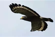 蛇雕是鹰形目鹰科蛇雕属鸟类,又称蛇鹰、白腹蛇雕、冠蛇雕。成鸟额部白色,头顶黑色,枕部黑色带白斑的冠羽可呈扇状打开;上体暗褐色,具窄的白色羽缘;尾黑色,具一条白色的宽中央横带及白色的窄外缘;翼褐色杂白斑,…全部>>