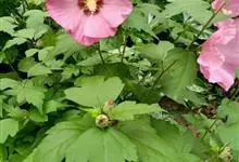 芙蓉葵是锦葵科木槿属植物,又名草芙蓉、大花秋葵,原产于北美。落叶灌木状。叶大、广卵形,叶柄、叶背密生灰色星状毛。花大,单生于叶腋,有白、粉、红、紫等色。喜阳、略耐阴,宜温暖湿润气候,忌干旱,耐水湿,…全部>>