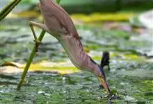 紫背苇鳽是鹭科、苇鳽属动物,为涉禽,体长约33厘米。头顶黑色,后头至尾上覆羽暗栗褐色;翅上覆羽橄榄黄色;下体浅棕黄色。多生活于水库和山脚边的稻田、芦苇丛、滩涂及沼泽草地,在西藏见于海拔2300米的农田,…全部>>