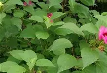 芙蓉葵是锦葵科木槿属植物,又名草芙蓉、大花秋葵,原产于北美。落叶灌木状。叶大、广卵形,叶柄、叶背密生灰色星状毛。花大,单生于叶腋,有白、粉、红、紫等色。喜阳、略耐阴,宜温暖湿润气候,忌干旱,耐水湿,…全部>>