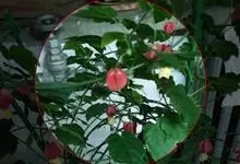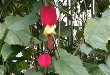 红萼苘麻是锦葵科、苘麻属常绿软木质灌木,叶绿色,长5-10厘米,心形,叶端尖,叶缘有钝锯齿,有时分裂,有细细的叶柄;叶互生,掌状叶脉;花单生于叶腋,具长梗,下垂;花萼红色,半套着大约4厘米长的花瓣,…全部>>