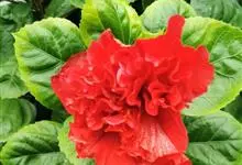 重瓣朱槿是锦葵科、木槿属常绿灌木植物;小枝疏被星状柔毛单叶互生,卵形或卵状披针形,基部圆形;叶柄长;托叶早落;花重瓣,较朱槿为大;花萼小,钟形,基部具有苞片多枚;花瓣多枚排列成彩球状,…全部>>