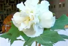 木芙蓉,锦葵科木槿属落叶灌木或小乔木。小枝上有细绒毛;叶片为卵状心形,托叶为披针形,常早落;花单生,花萼为钟形,花冠初为白色或淡红色,后逐渐变为深红色;果实为扁球形,有淡黄色的毛附着。花期8到10月。…全部>>