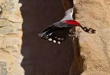 红翅旋壁雀:体重15-23克,体长120-178毫米。是一种体型略小的鸟类。尾短而嘴长,翼具醒目的绯红色斑纹。飞羽黑色,外侧尾羽羽端白色显著,初级飞羽两排白色点斑飞行时成带状。繁殖期雄鸟脸及喉黑色,…全部>>