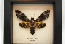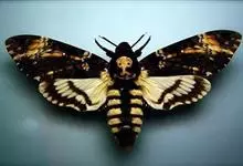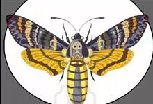 鬼脸天蛾,是鳞翅目天蛾科面形天蛾属动物。成虫翅展100~125毫米,体黑褐色;胸背有骷髅形斑纹;卵圆球形,直径约2毫米,淡黄绿色,表面光滑;老熟幼虫体长70~90毫米,蛹体长约56毫米;前翅为褐色,…全部>>