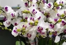 蝴蝶兰又名蝶兰,素有“兰花皇后”的美称。兰科蝴蝶兰属多年生草本植物,茎很短,常被叶鞘所包;叶片稍肉质,上面是绿色,而背面是紫色,呈椭圆形或长圆形,且先端锐尖或钝,具有短而宽的鞘;花色为白色,…全部>>