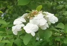蝴蝶戏珠花 Miq.)是荚蒾科荚蒾属植物。落叶灌木,高达3米;当年小枝浅黄褐色。叶较狭,宽卵形或矩圆状卵形,有时椭圆状倒卵形。花序直径4-10厘米,外围有4-6朵白色、木型的不孕花。果实先红色后变黑色,…全部>>