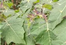 刺天茄,是茄科茄属的多年生草本植物。茎直立,枝条有刺;叶片大,互生,卵形或椭圆形,有长柄,叶面有短柔毛;花单生于枝顶,外面密被星状绒毛及细直刺,果被星状毛及直刺,浆果球形,光亮,…全部>>