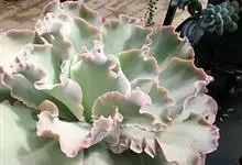 女王花笠,又名扇贝石莲花、女王花舞笠,是景天科拟石莲花属的多肉植物。由美国加利福尼亚州的育种师Dick Wright于1964年培育。特征是呈大波浪状褶皱的红色叶缘和气质高贵的粉紫色调。…全部>>