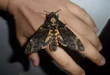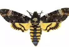 鬼脸天蛾,是鳞翅目天蛾科面形天蛾属动物。成虫翅展100~125毫米,体黑褐色;胸背有骷髅形斑纹;卵圆球形,直径约2毫米,淡黄绿色,表面光滑;老熟幼虫体长70~90毫米,蛹体长约56毫米;前翅为褐色,…全部>>
