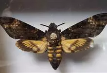 鬼脸天蛾,是鳞翅目天蛾科面形天蛾属动物。成虫翅展100~125毫米,体黑褐色;胸背有骷髅形斑纹;卵圆球形,直径约2毫米,淡黄绿色,表面光滑;老熟幼虫体长70~90毫米,蛹体长约56毫米;前翅为褐色,…全部>>