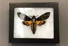 鬼脸天蛾,是鳞翅目天蛾科面形天蛾属动物。成虫翅展100~125毫米,体黑褐色;胸背有骷髅形斑纹;卵圆球形,直径约2毫米,淡黄绿色,表面光滑;老熟幼虫体长70~90毫米,蛹体长约56毫米;前翅为褐色,…全部>>
