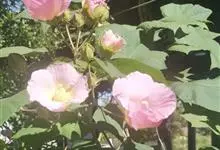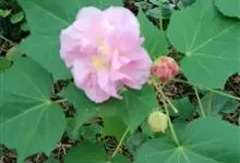 木芙蓉,锦葵科木槿属落叶灌木或小乔木。小枝上有细绒毛;叶片为卵状心形,托叶为披针形,常早落;花单生,花萼为钟形,花冠初为白色或淡红色,后逐渐变为深红色;果实为扁球形,有淡黄色的毛附着。花期8到10月。…全部>>